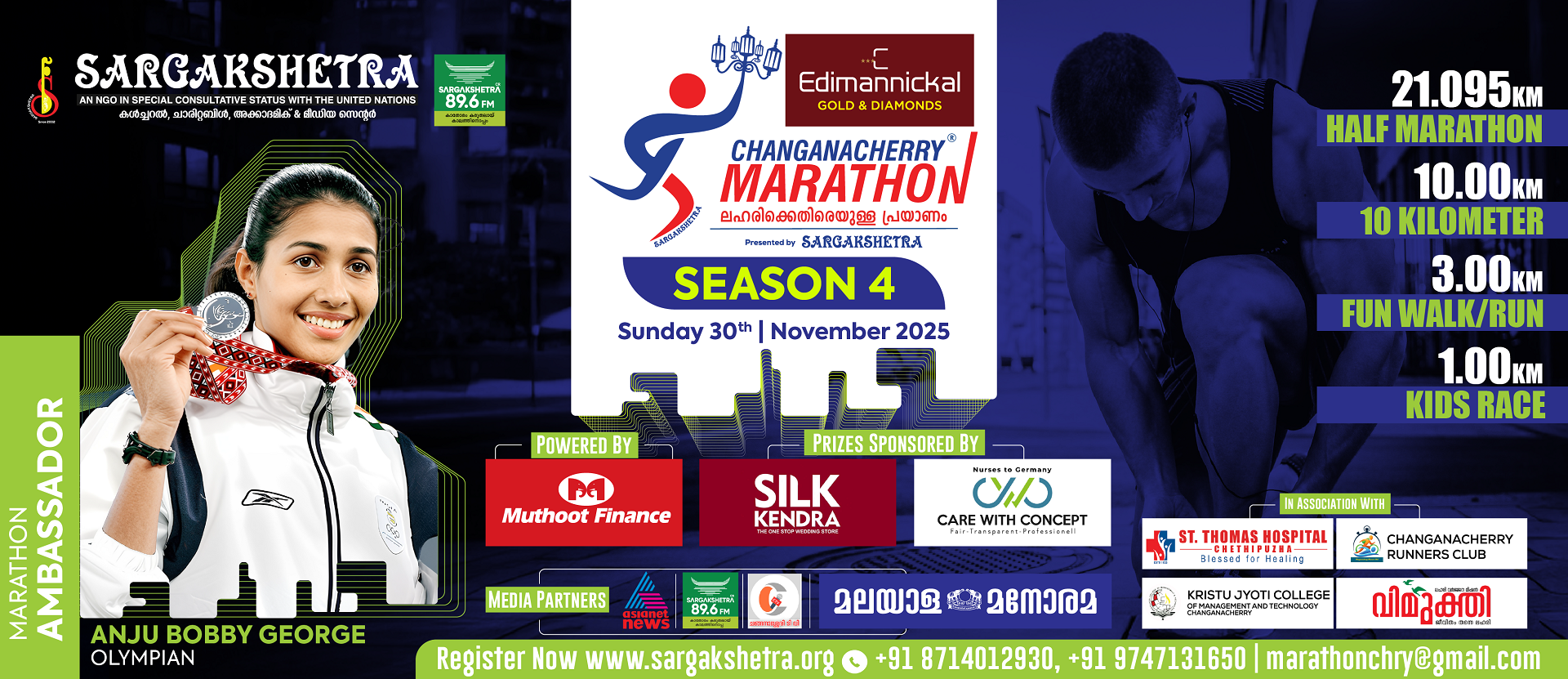 Race kit should be collected from the Sargakshetra office, Chethipuzha, Changanacherry on specified dates and time.